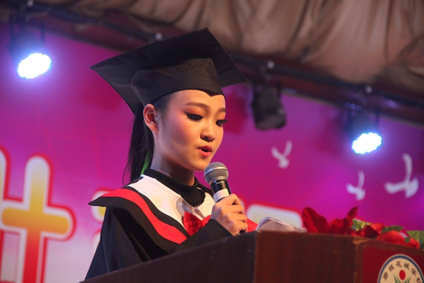 黄诗喆同学代表所有毕业生感谢母校的教诲,祝福母校更美好。感言中充满不舍,充满留恋,充满感激。