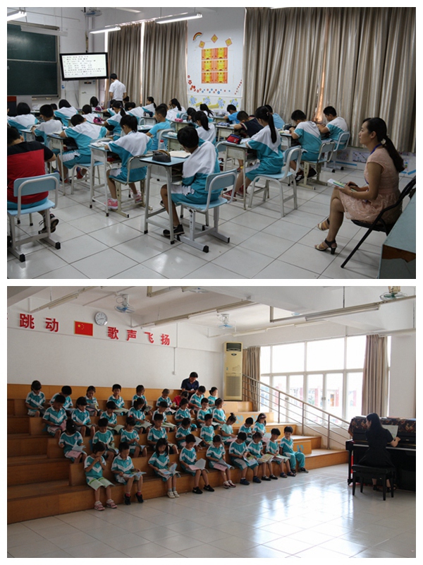 下午14:30,评估组分别到各个班随堂观课,对学生精神面貌、教师教学常规进行查看。