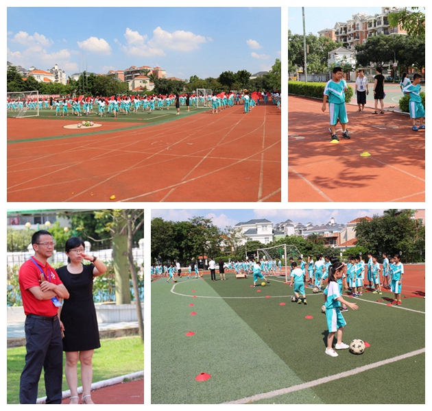 下午15:10,随着节奏明快,动感十足的音乐,评估小组观看了我校“阳光体育”大课间,看到孩子们整齐的动作、愉悦的笑脸,他们对花城学校体育大课间的开展称赞不已。