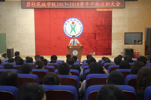 为进一步提升学校干部的执行力,不断加强干部队伍建设,促进学校内涵发展,2018年7月8日上午,碧桂花城学校全体教师集中学术报告厅举行了2017—2018学年度干部述职大会。