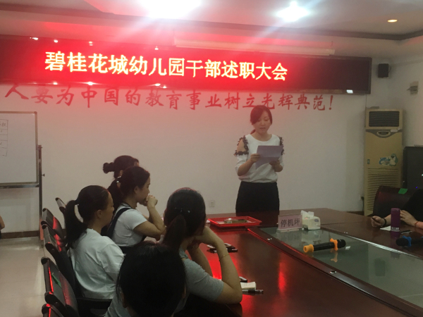 竞岗结束后,我园梁少容园长总结,她鼓励四位竞聘老师无论在哪个岗位,都要认真做好自己的本职工作,积极配合班级老师,团结班集体,为孩子创造五星级的家。梁园长还激励各位班主任要人品与业绩双修,博学而后言传,正己方能身教。