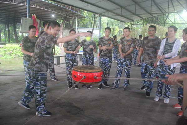 下午,教练为我们安排了“鼓舞飞扬”拓展项目。想让一个小球在鼓面上不断跳跃,这可不是一件容易的事。每个队伍都集中智慧,在教练规定的练习时间里总结了方法和技巧,在小组比赛中竟然有队伍一次颠了50个球,这样的好成绩赢得了大家热烈的掌声。同时,每个队的成员通过这个挑战更加默契了。