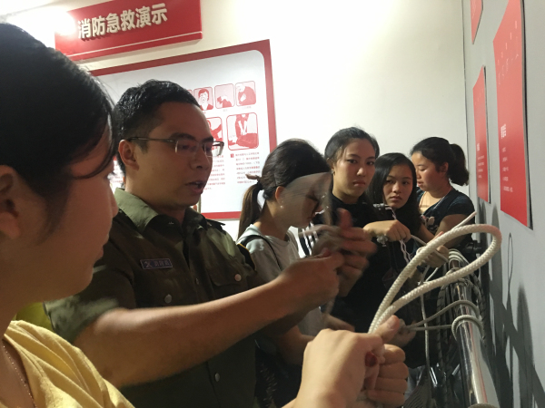 第三部分是参观消防体验馆。在体验馆中我们看到了很多消防的基本知识和器材,消防员还向我们展示了如何正确打结自救。