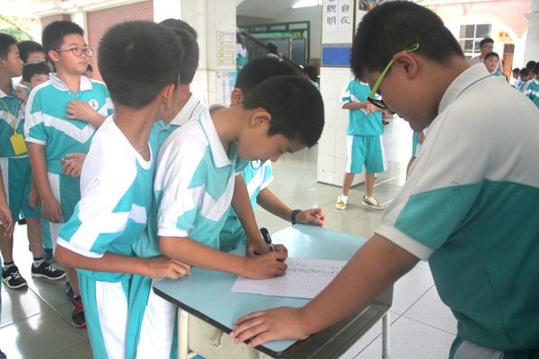 丰富多彩的社团活动受到了学生们的热烈欢迎。午饭后,学生就到放满招生海报的大厅,找到了自己心仪社团的报名位置,为下午选报社团做好充分准备。下午铃声一响,同学们便撒开步子,直奔自己的理想社团。一时间,大厅人头涌动,各社团海报前排起了长龙。有的学生手里还拿着小纸条,上面写了几个社团名称,还标注了序号。原来他们提前做了攻略,将自己心仪的社团进行了排序,方便自己在选报社团时,多一些选择。