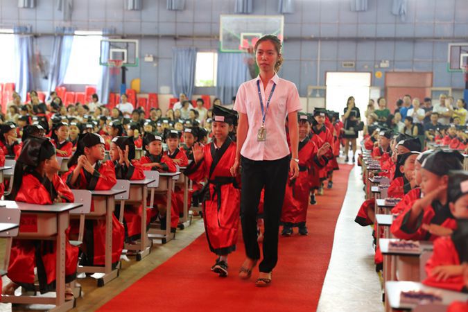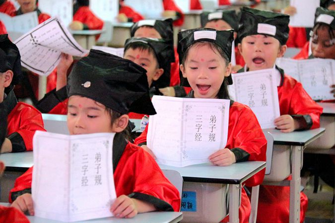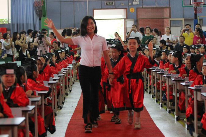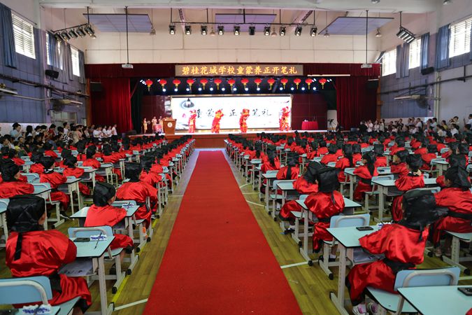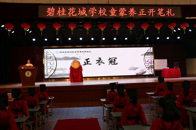 “人之初,性本善,性相近,习相远……”伴随着优美的古典乐曲,9月14日下午,碧桂花城学校一年级的孩子们和家长们,他们齐聚在学校综合馆二楼,每个人的脸上都洋溢着花朵般灿烂的笑容。因为他们怀揣着对中华优秀传统文化的敬畏之心,他们将在这里举行一次隆重的开笔启蒙仪式。