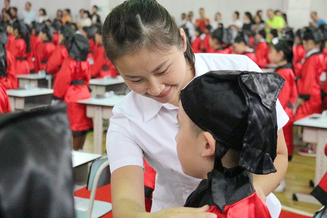 孩子们先自正衣冠、再互正衣冠,最后师正衣冠。目的就是告诉孩子们:衣冠不仅仅只是意味着遮羞,更重要的是反映人的精神面貌,所以要先正衣冠,然后才能明事理。
