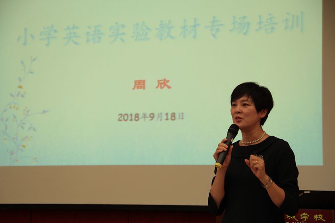 下午2:30,活动正式开始。由全国英语教学名师周欣老师做小学英语低年级的教学培训,与一线老师们近距离,面对面,接地气的交流。