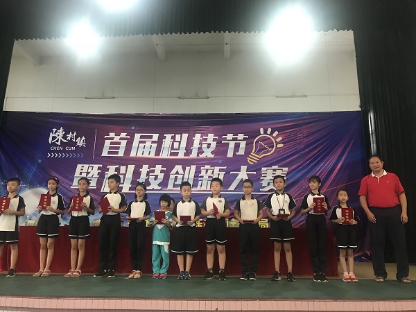 2018年9月27日,陈村镇科技创新大赛在镇中心小学举行,本次大赛分为“创新成果”、“科技实践活动”、“科幻绘画”、“动漫作品”及“辅导员创新项目”共五大项目。赛事吸引了全镇中小学18所学校的300多名师生参加,共收集到300多件作品,其中我校选送了28件作品参加比赛。经过激烈角逐,我校再创佳绩,14件作品获特等奖、7件作品获一等奖、3件作品获二等奖、1件作品获三等奖。其中特等奖数量遥遥领先,在所有学校中稳居第一。在上送区参加比赛的作品中,我校又以13件作品的数量名列镇第一名。祝贺参加比赛的老师与同学们,感谢他们的付出,预祝他们在区科技创新大赛中再获好成绩。