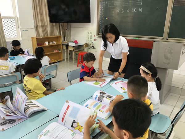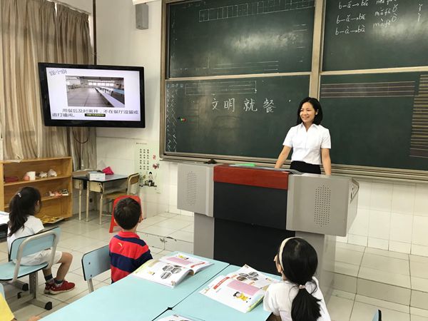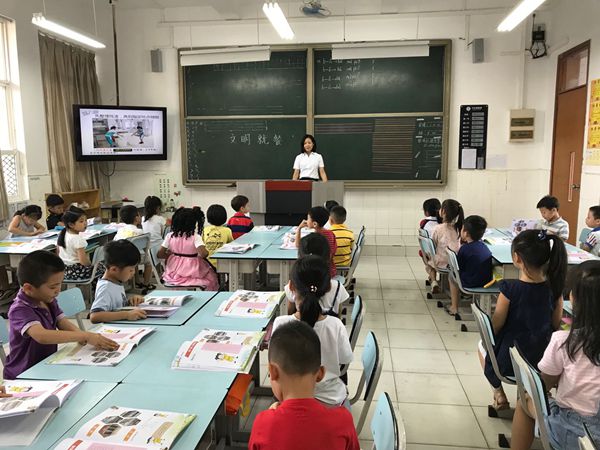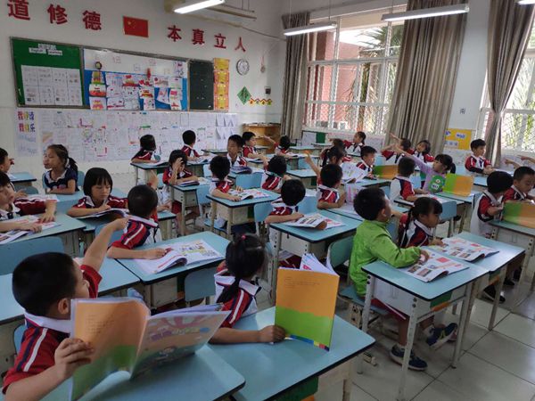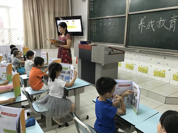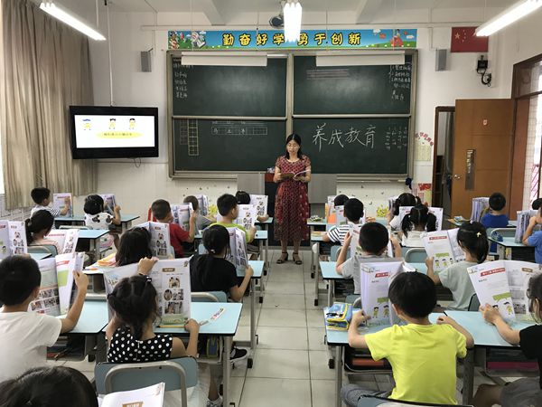 课堂上,一年级的班主任老师们利用班会课,带领孩子们细细地阅读教材,并结合实际,手把手引导孩子们成为真正优秀的小学生。孩子们看着陌生的事物慢慢变得熟悉,心里别提有多高兴!看,孩子们总是喜欢拿着这本书,向他们的小伙伴们绘声绘色地描绘着:“我今天到这里玩了!”、“这美术室我知道怎么去。”、“我很喜欢这套校服。”……在潜移默化中,孩子们渐渐融入到了小学生活中去,同时良好的行为习惯也逐步形成。