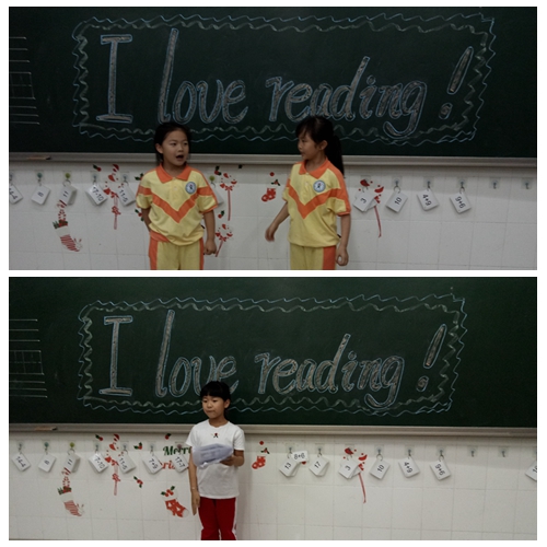 一1班的孩子们学习Super minds 教材已有一个半学期了,他们拥有了一定的词汇和句子的积累,对每个单元的故事环节更是信手拈来。看!他们开始读起来了,演起来了!为了证明自己是英语阅读小明星,孩子们读起书来声情并茂,绘声绘色,可积极了!