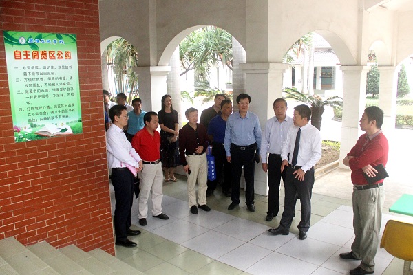 碧桂花城学校贺小勇校长携全体行政班子陪同领导和专家组参观了校园环境,贺校长声情并茂地讲解了创建特色学校三年以来学校取得的巨大改变。
