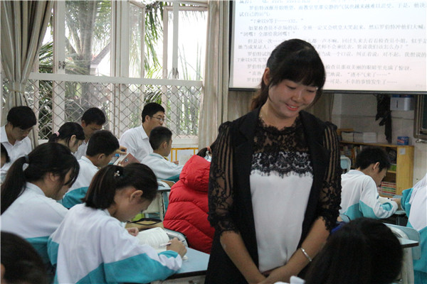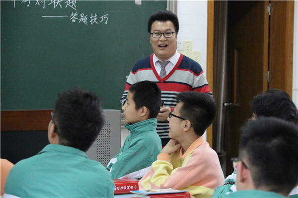 九年级的王展鹏老师执教的是《中考对联题》。对联题对学生而言,生疏而又难懂,但王老师课前的导入十分新颖,用