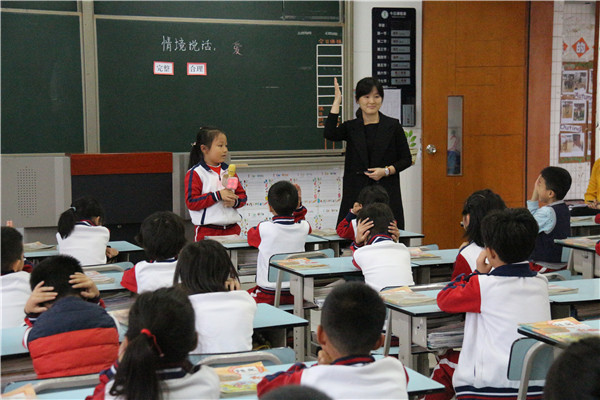 一年级的邓绿萍老师上的是情景说话课——《有爱才快乐》。纵观整节课,每个环节都是老师精心设计的,目的性强,构思巧妙,是一节能够给人启发的说话课。课堂中老师能抓住一年级孩子的年龄特点,首先引导孩子围绕“爱”这个主题,将一句话说完整,然后指导孩子如何正确使用标点符号,最后巧妙地把形容词运用到句子中去,借此告诉孩子恰当地使用形容词可以让句子变得更加生动。