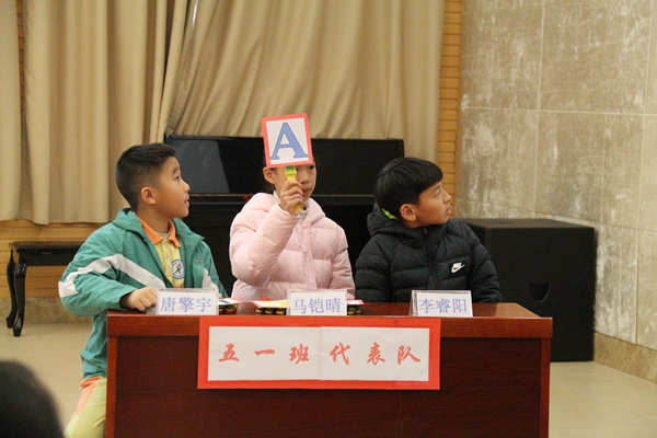 为加快普及青少年科技教育,提高学生的科学文化素质,积极推动校园科技节活动的蓬勃开展,2018年12月14日15:20分,博实乐碧桂花城学校五年级学生在学术报告厅开展“一站到底”科普知识竞赛活动。伴随着气势昂扬的音乐,来自五年级的4支参赛队伍分别亮相。