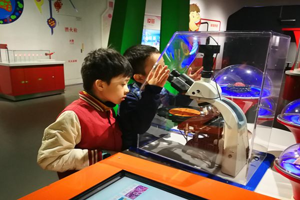带着几分神秘,走进旁边的“生命奥秘”展厅探秘生命:生命起源、声音幻觉、皮肤构造、三维人体扫描……一个模型大嘴就能全方位了解口腔秘密、用显微镜就可以看到好玩的细菌、原来骑单车还能测心跳!真是长知识了!孩子们带着几分欣喜,感受着纷繁的生物世界和生物的多样性,探索生命、自然与人之间的关系。