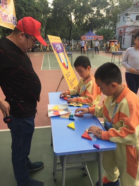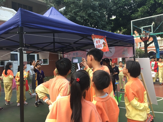 在游园活动中,校园里到处都可以看到沉浸在数学王国里的孩子们,整个校园成了数学的海洋。每个孩子的神情都是那么专注,非得把难题解出来不可!解题台前围满了兴奋的孩子,他们每个人都想第一时间让老师和同学见证他努力的成果。一个小时的活动精彩纷呈,直到最后孩子们都不肯放弃,仍在努力尝试。