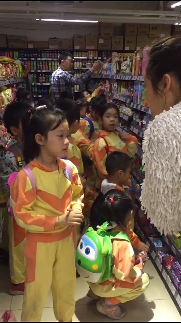 本次活动我们不再局限于安全的幼儿园内,而是来到社区超市里。各班家长志愿者扮演的“人贩子”和老师按照计划进行。当孩子们还沉浸在逛超市的闲逸时光时,“人贩子”开始寻找 “猎物”。他们利用孩子单纯、好奇心强的天性展开“诱拐”。天真可爱的孩子们丝毫没有感觉到“危险”正在向他们一步步靠近……别看这群小家伙平时能说会道,遇到真实的“骗子”也迷失了方向!但也有部分被陌生人带走的孩子发现自己上当了,着急慌忙地掉头寻找老师和超市工作人员帮助。