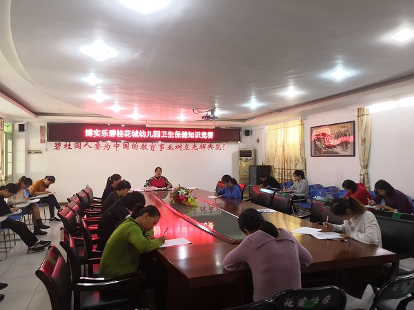 为了提高教师关于3-6岁儿童身心发展的专业素养,加深教师关于儿童常见传染病的症状、预防措施等卫生保健知识,防止幼儿园传染疾病的发生和蔓延,让孩子们健康快乐地成长,博实乐碧桂花城幼儿园开展了教师卫生保健知识竞赛。