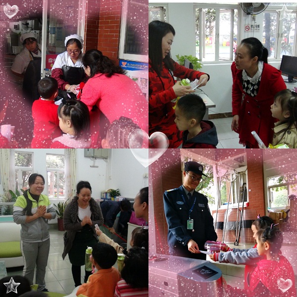 看,派对活动正式开始了!幼儿代表用流利的英语致开场词,感恩父母、感恩老师、感恩身边关爱他们的人,并用实际行动给幼儿园的园务人员、后勤人员(厨房叔叔阿姨、保安叔叔、保洁阿姨等)赠送杯子送温暖。