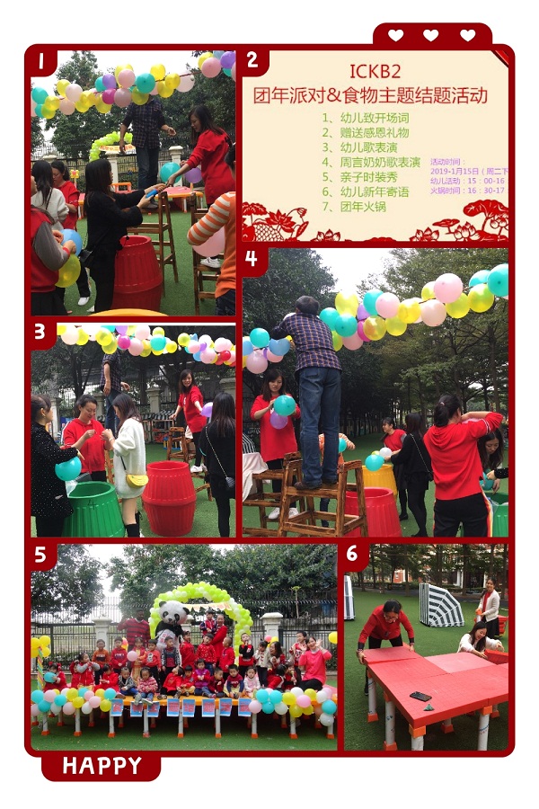 伴随着冬日里温暖的阳光,新年的钟声敲响,2019年春节将如约而至。新年历来被视作家人团圆、亲友欢聚的节日,这是一个属于所有中国人的节日。这也是一个进行情感教育的极好机会。2019年1月15日下午,博实乐碧桂花城幼儿园国际中二班举行了别具一格的“迎新年,享美食”派对,结合班级“食物”主题活动迎接即将到来的新春佳节。活动期间园内彩球飘飘、美食飘香、欢声笑语,洋溢着喜庆而和谐的新年氛围。让我们一起回顾这次大趴的精彩瞬间吧!