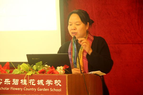 紧接着田桂花副校长代表课程中心作报告,她从管理和特色两方面总结了课程中心本学期的工作。在管理工作方面,田副校长详细地从抓好教学常规管理、关注课堂教学、规范质量监控、加强学科组建设四个部分作了汇报。在特色工作方面,她总结了课程中心在特色课程、特色活动、特色教师三方面的工作措施及成绩,反思了工作中需要改进的地方,还提出了下一阶段的工作设想。