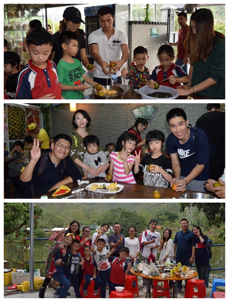 午餐后,孩子们还去体验抓泥鳅,喂动物,自己种植蔬菜的活动。最后大家还亲手制作了陈皮普洱茶。当陈皮遇到普洱茶,擦出了不一样的火花。孩子和家长们亲自动手摘取正宗的新会茶枝柑,通过团结合作DIY出自己的柑普茶。