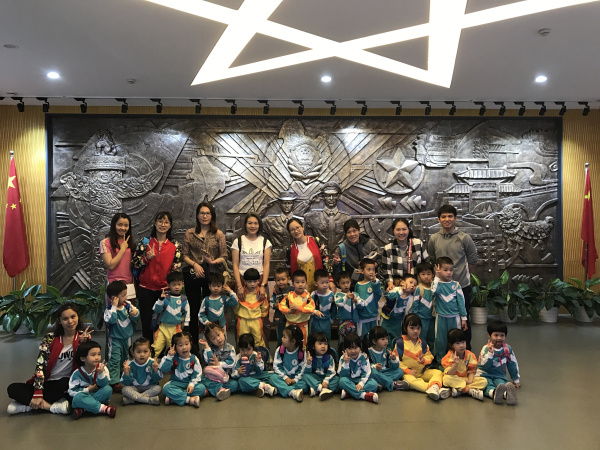 接着警察解说员带小朋友们进入展示厅里参观。在展厅内,孩子们通过观看大量的图片与实物,接受着一次革命传说和爱国的教育。