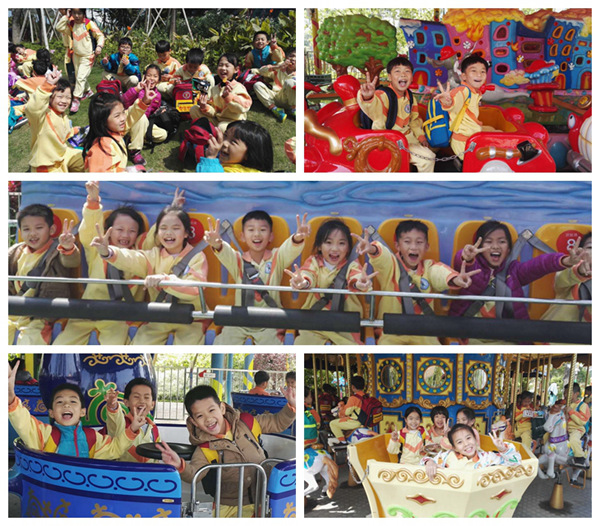 除了各种各样的游乐项目,园内成熟的设计,别致的亭台楼榭,也构成了一幅幅美丽的画卷。同学们尽情徜徉在满园春色里,一串串笑声如铃,一张张笑颜如花。他们处处合影留念,将这美好的一刻定格。