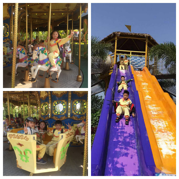 最让同学们感兴趣的还是欢乐奇域和旱雪小镇!在这里,同学们体验了疯狂袋鼠、青花转转杯、丛林对对碰、逍遥水母、4D电影和有趣的滑圈道……好玩的游戏真是应有尽有!