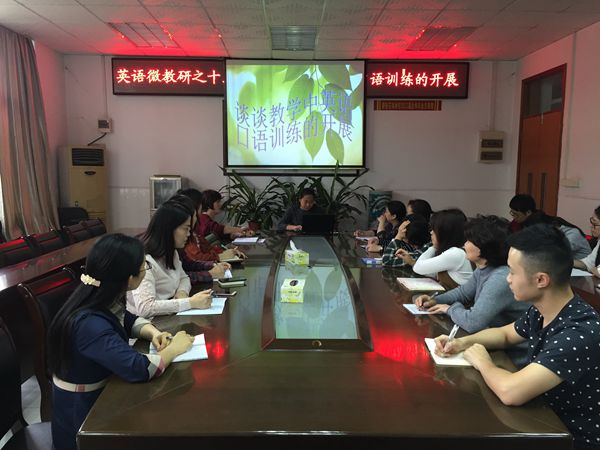 本次微教研的主讲者是罗艳梅老师,主讲的题目是“谈谈教学中英语口语训练的开展”。罗老师跟我们介绍了一些她在平时教学中训练学生口语的具体做法: