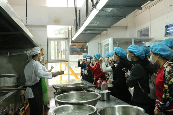 随后,在梁园长的带领下,委员代表们深入厨房工作进行全面的检查与监督,观看了厨工制作食品的全过程,对食品加工的规范有了更深的了解。在查看了食品的进货台帐资料后,大家不禁感叹我园的厨房日常管理严谨细致,同时感受到厨工的辛劳。