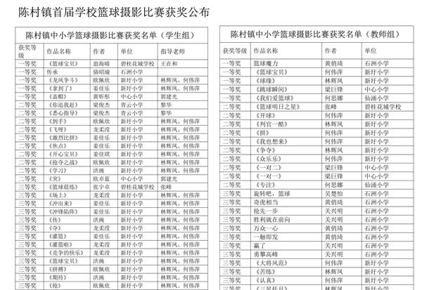 陈村镇首届学校篮球摄影比赛喜获佳绩