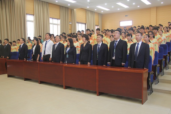 大会在雄壮的国歌声中拉开帷幕,全体师生精神抖擞,高唱国歌。