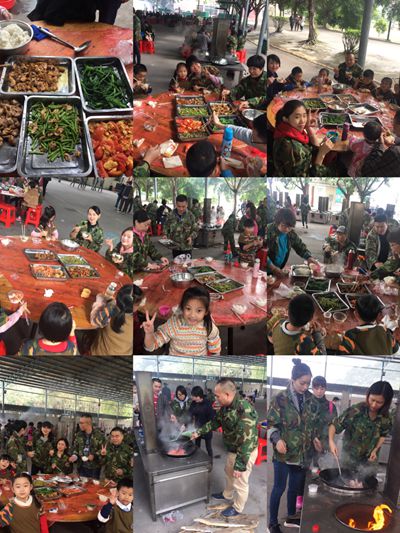 到了中午,孩子在家长的带领下,撸起袖子一起洗菜、搬柴、炒菜、摆盘……瞧,稚嫩的小手在认真努力地帮忙着。不一会儿的功夫,一桌美味的饭菜诞生了,香气扑鼻,有的孩子还忍不住偷偷吃一口!