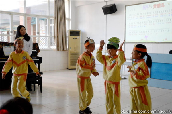 二(2)班彭金婷老师和孩子们一起上了一节活泼好玩的音乐课《黄鹂与蜗牛》。在这节课里,彭老师针对低年级学生的年龄特点,让孩子在快乐中学习,除了老师的讲解,还让学生进行表演,调动了学生的学习兴趣。