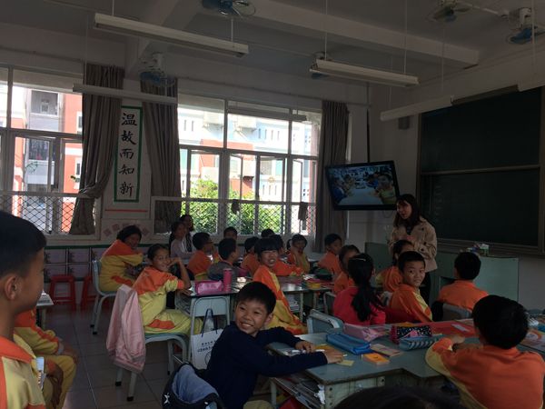 五四班的吴敏映老师上的课是人教版教材 “What’s he like” 这一单元的“Story time”。课上,吴老师先以本单元的重点句型导入What’s he like? / What’s she like ? 吴老师让学生联系实际情况来展开说,营造一个英语良好的上课氛围。整节课按照本道课堂模式设计,学生先提前预习,并在接下来的环节中,出示预习案的答案。接着,以游戏环节,引导学生猜动物背影的图片。教师引导学生分析,对比五种动物的外貌特征;再用足球来导入故事,让学生自己以小组为单位整合排序整个故事;然后,分析文章内容并引导孩子们去根据课文提问题。课堂上,孩子们在合作做手工活的同时理解文章。课堂气氛活跃,增强了学生学习英语的兴趣。