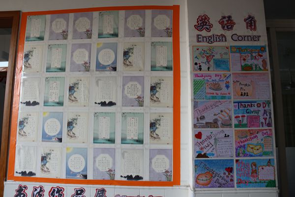 为了迎接家长们的到来,两周前全校孩子在老师们的带领下开始了充足的准备:教室里打扫得干净整洁;两边墙上张贴了孩子们美观的书画作品和语数英作 业;教室外的走廊上也换上了本学期开展的各种活动照片。
