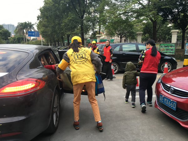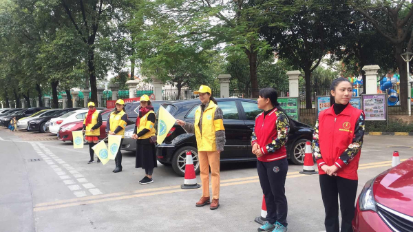 12月的第二周,“家长护畅队”的义工家长正式上岗,周一早上7:30,家长护畅队志愿者身穿黄色义工服,准时出现在了幼儿园门口。他们劝谕送孩子上学的家长把车停稳在指定位置,并从车上接下孩子,细心地护送他们走进幼儿园。在家长护畅队的协助下,周一的上班高峰期,幼儿园门口道路仍然通行顺畅,秩序井然。