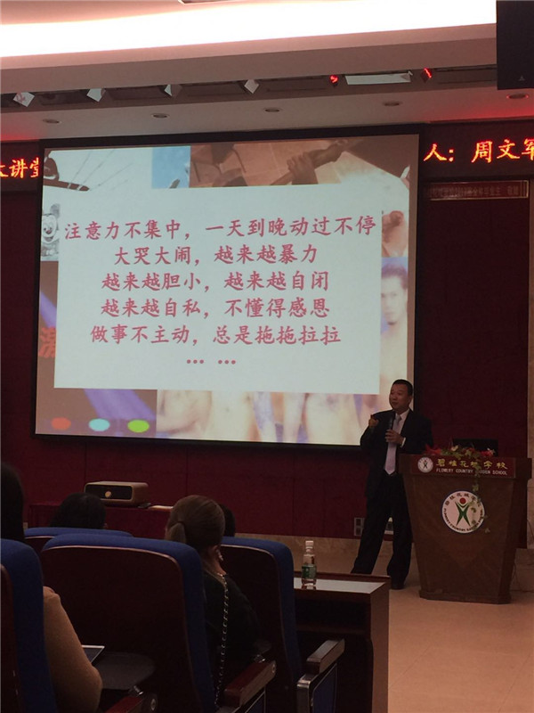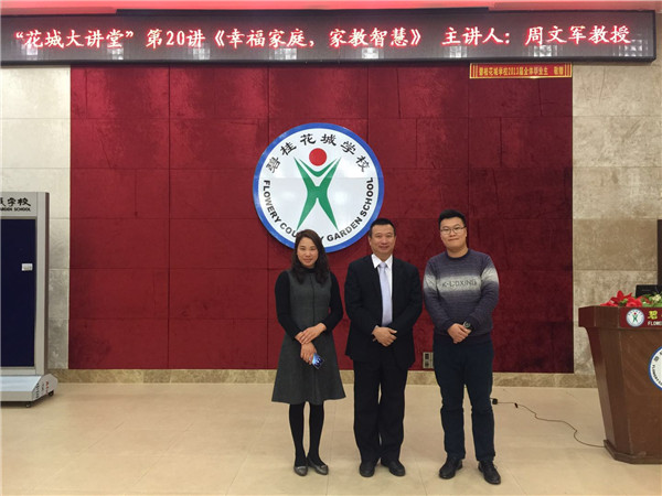 12月12号晚,碧桂花城学校“花城大讲堂”家庭教育专场活动在学术报告厅举行。教育专家周文军教授作了题为《家庭教育之环境育人》的专题讲座。学校教师代表及二年级家长聆听了本次讲座。
