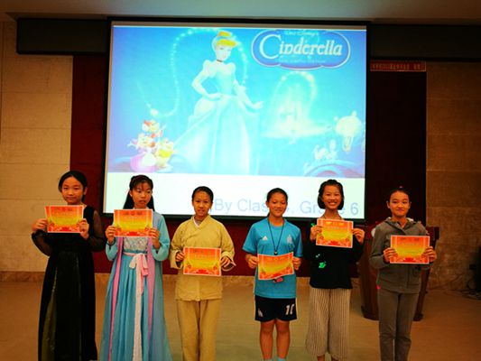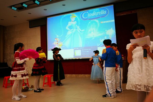 六(4)班出演了格林童话Cinderella,不得不说孩子们演技高超,瞧,灰姑娘温柔美丽,继母狠毒阴险,两个姐姐自私贪婪,她们甚至用服装和饰物的色彩表达了对角色的理解。整个场景充满着童话的浪漫,真善美最终战胜邪恶,有情人终成眷属。