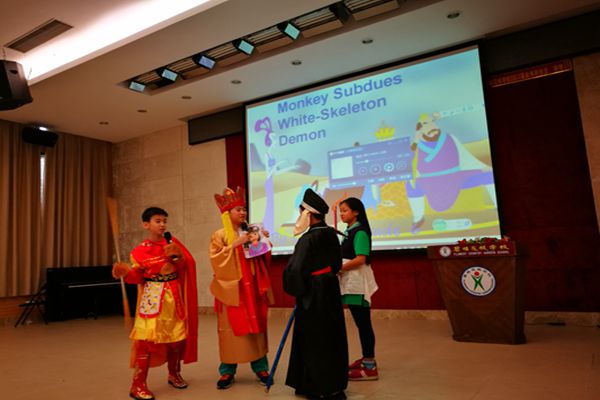 六(2)班出演的是中国的经典名篇英文版Monkey Subdue White Skeleton Demon,他们的服装尤为出彩,浓浓的西游气息瞬间惊艳了全场,他们的表演妙趣横生,迎来台下阵阵会心的笑声。