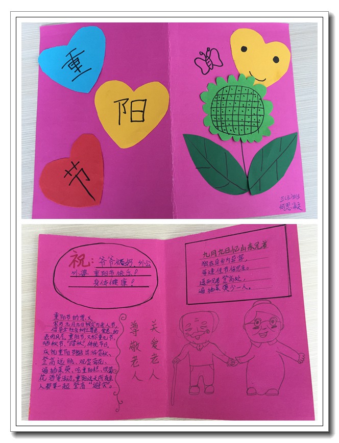 九九重阳,天长地久,既是登高望远、品酒赏菊好光景,也是尊老、敬老、爱老日。碧桂花城学校德育处组织全校学生举行了一次别开生面的体验活动-----“敬老贺卡比赛”。