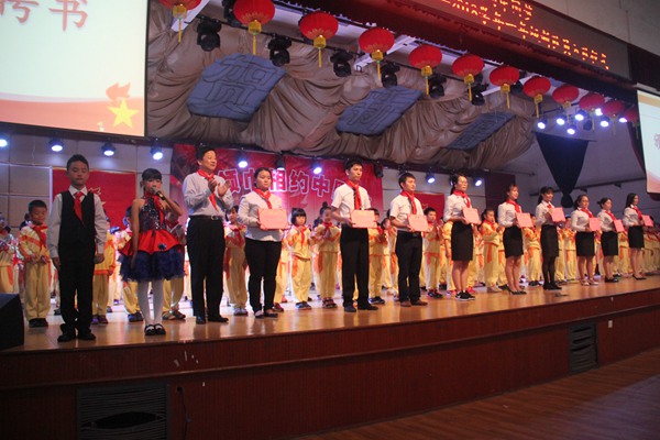 随后,团支部书记王主任为新成立的五个中队授予了中队旗,贺校长为一年级和四年级中队辅导员颁发了聘书。可爱可敬的中队辅导员们,激动万分地接过聘书和中队旗,也从此接过了共产主义事业的接力棒,他们将和孩子们一起前进、奋斗!