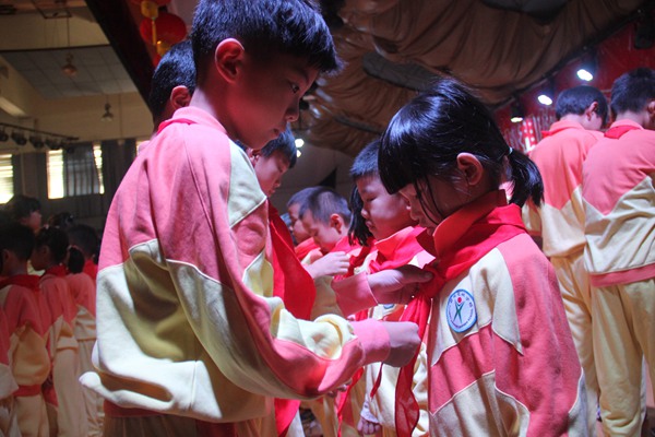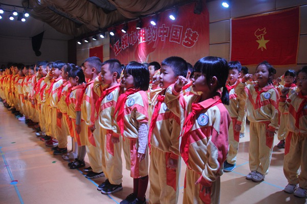 在庄重的入队仪式中,同学们牢记入队誓言,将继续弘扬少先队的光荣传统。鲜艳的红领巾在孩子们的胸前飘扬,犹如星星之火,他们将点燃中国梦。少先队员们,为实现中华民族伟大复兴的中国梦而奋斗吧!