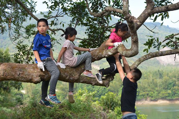 下午的爬山攀岩活动更具挑战性,山坡陡峭,领队教我们重心向前,侧行等攀爬方法,我们搭起登山绳,勇敢向前,大家团结互助,大手拉小手,家长们也给了孩子许多鼓励。孩子的潜力令人惊讶,上到山顶,秀美宁静的正果镇美景尽收眼底。最难忘的是孩子们有一段下山路的挑战,孩子们不畏艰难,齐心协力地向前迈进。