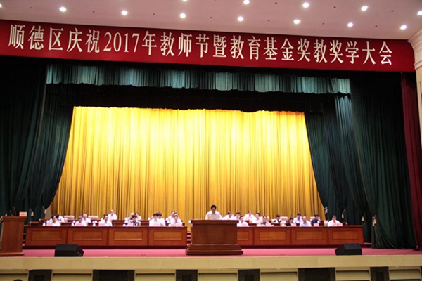 9月8日下午,顺德区举行了庆祝2017年教师节暨教育基金奖教奖学大会。大会对先进学校、先进教师和先进镇街等个人和集体进行了表彰。会上,顺德区教育局局长闵乐萍女士对我区过去一年的教育工作做了总结并做出了今年的工作计划;顺德区委常委、副区长王勇肯定了顺德教育综合改革成果,并提出了新的要求;顺德区委副书记、区长彭聪恩向广大教师承诺区委区政府一定会加大对教育的关注和投入,顺德的教育一定会越办越好!