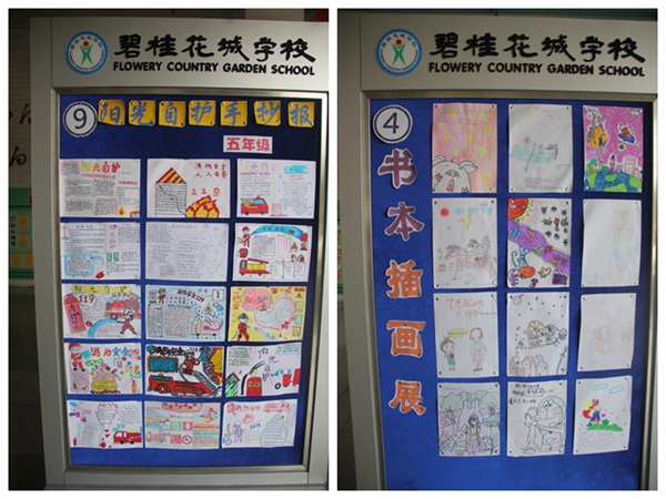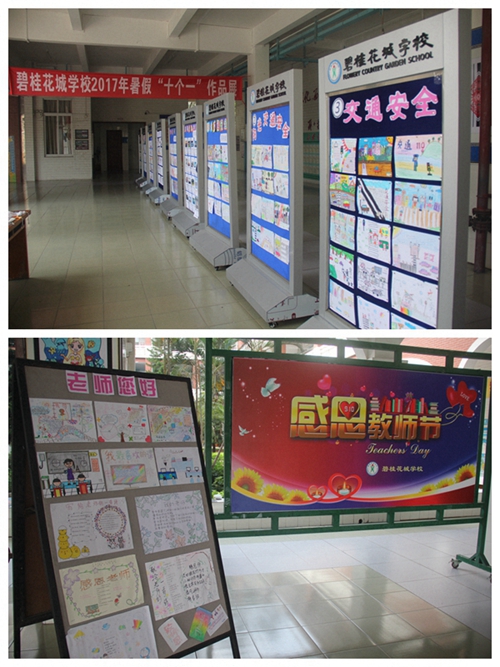 经过同学们的努力,9月7~8日,碧桂花城学校2016~2017学年度暑假“十个一”活动作品展在学校大厅展出。在活动作品展现场,各年级不甘落后,纷纷发挥创意,把自己的展区布置得有声有色。展区分几大板块:“阳光交通安全”、“阳光自护”和“守护青春、珍爱生命” 等主题绘画和手抄报展;“爱环境、爱陈村”主题环保袋设计展;“发现身边的美”摄影活动展;“香港归,一国情”绘本创作活动展;“经典阅读——读一本好书”之设计封面和书本情节绘画展、植物材料创意贴画展等。
