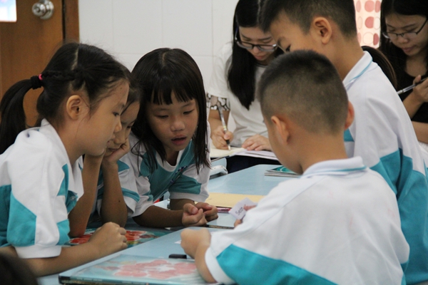 在教研活动中,由谢梅嫦老师示范了一节别开生面的英语阅读课——Story time,谢老师针对本节课的教学内容精心设计,采用了跳跃式阅读的新颖教学方式,激发了学生的好奇心与积极性,组织了多种有趣的小组活动,DIY问题、句子配对等,学生在轻松愉快的氛围既体验到了快乐,又明白了收获了丰硕的果实。