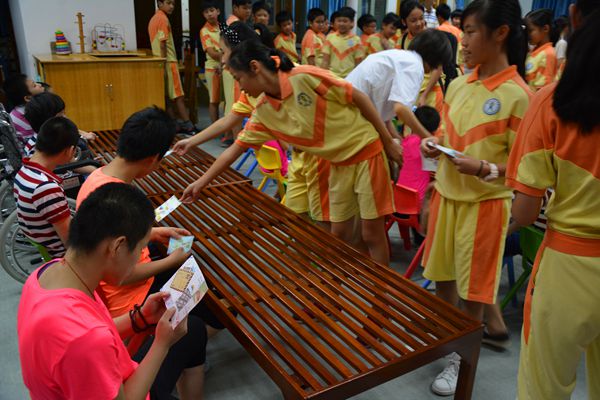 “送爱心”:与福利院孩子们沟通交流,了解他们的心理状况,赠送祝福卡片和小礼物。