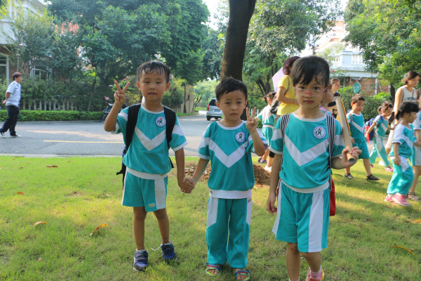 上午八点半,各班孩子背好小包,排着队伍,怀着愉悦的心情出发了。在老师的带领下,孩子们沿着社区的小路来到了河堤边。一路上,孩子们显得特别兴奋。大家拉着小手,有说有笑,时而高歌,时而细语。